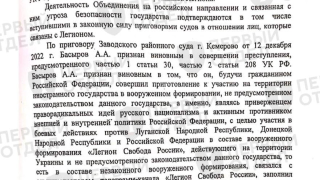 Из постановления Верховного Суда о признании «Легиона» террористической организацией следует, что дела за связь с ним начали возбуждать раньше той даты, которую суд определяет как дату основания формирования.