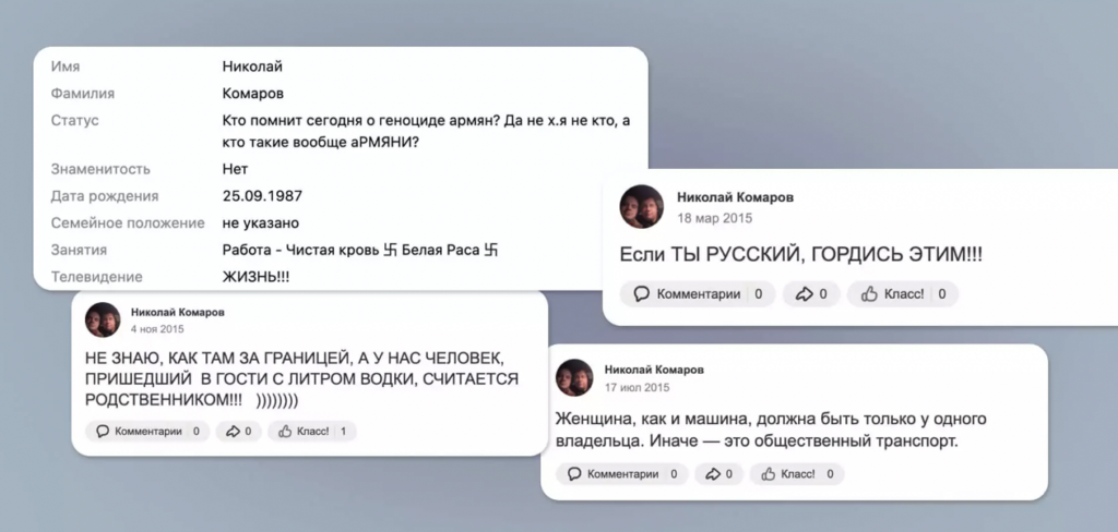 Николай Комаров познакомился с Полиной Евтушенко в соцсетях, приглашал на дружеские свидания, но тайно записывал все встречи на диктофон. Позже он обрезал их нужным ему образом и отнес в ФСБ. Обвинения в публикации постов появились в деле уже после задержания Евтушенко по доносу Комарова.
